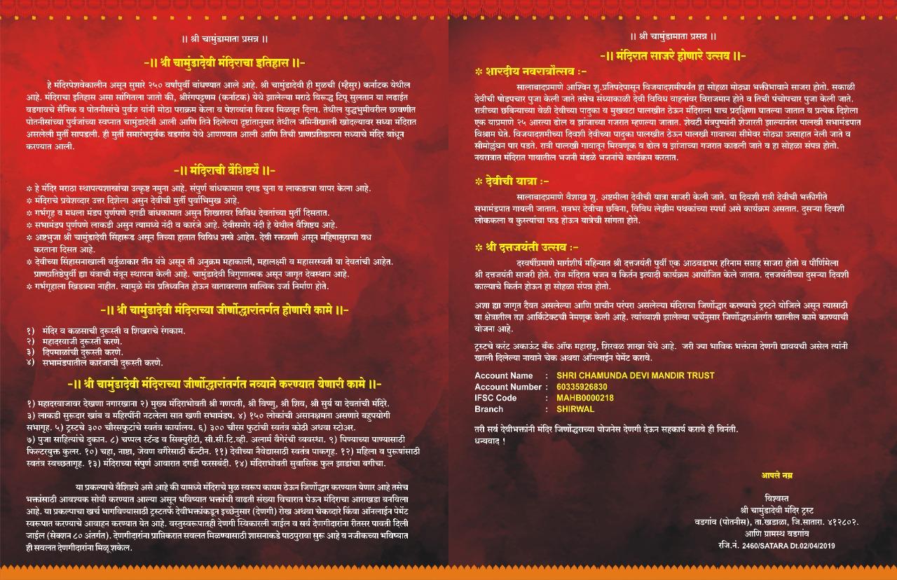 Shri Chamunda Devi Mandir since Peshwa era in Vadgaon (Potnis)